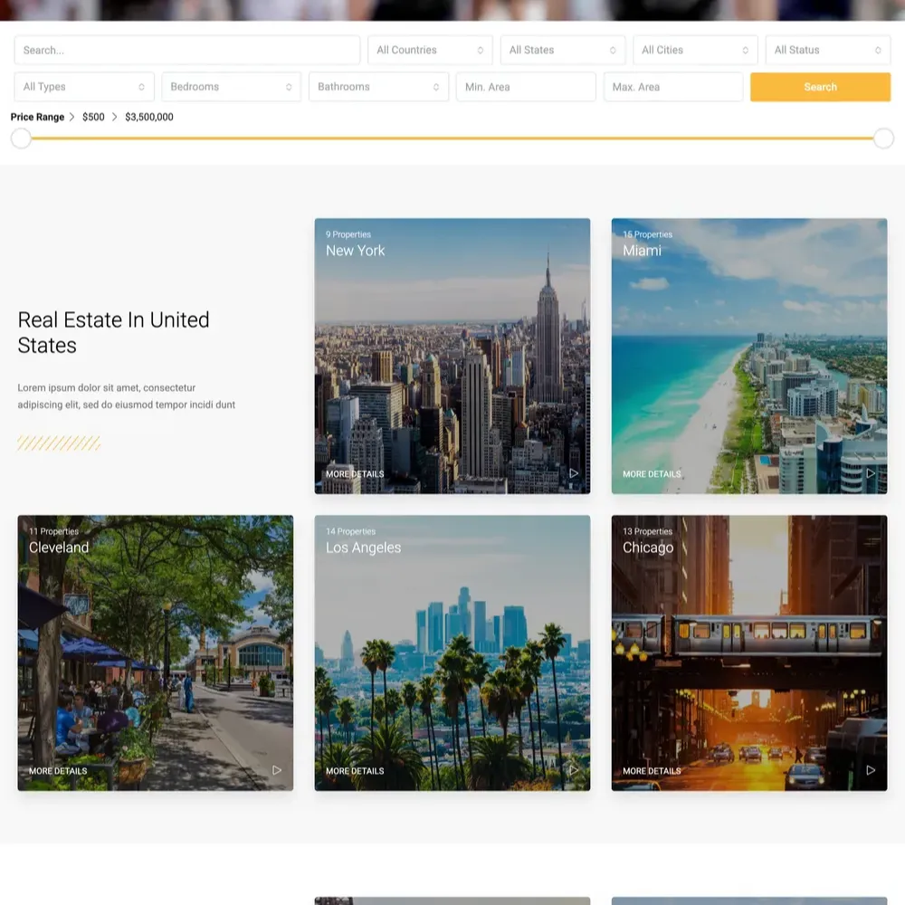 Real Estate Listing Website Design with Free VPS Web Hosting